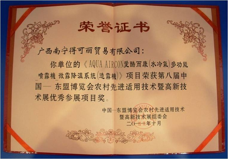 本公司係台灣第一個開發低耗能高效率多功能噴霧裝置並屢獲經濟部頒獎。